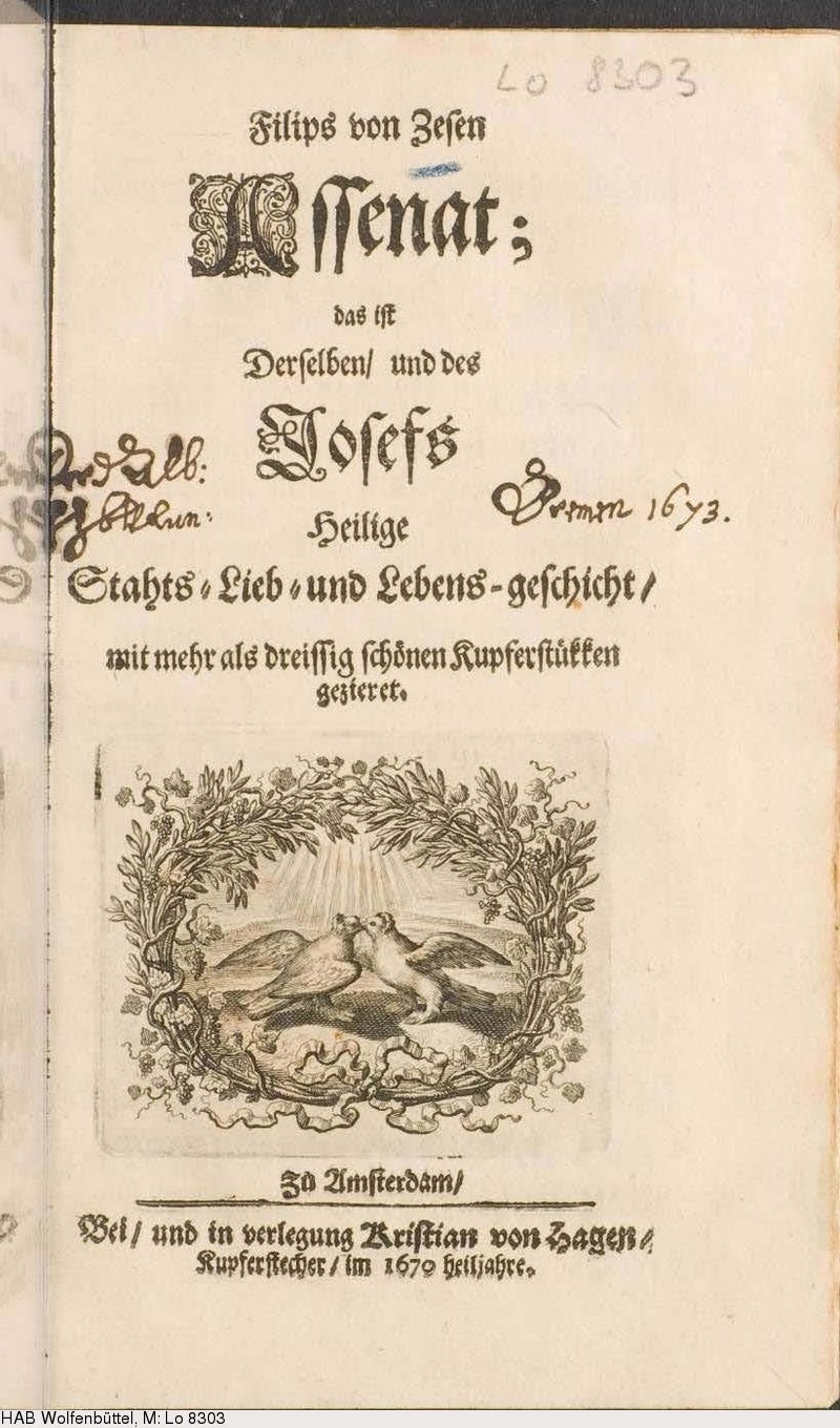 Ein weiterer „“Biblischer Roman “ mit höfischen Elementen. Nach dem zweiten Teil vom „ASSENAT “ ( 1670 ) sollte ein weiterer Teil um den biblischen Joseph folgen. Der dritte Teil der Trilogie erschien allerdings nicht mehr.